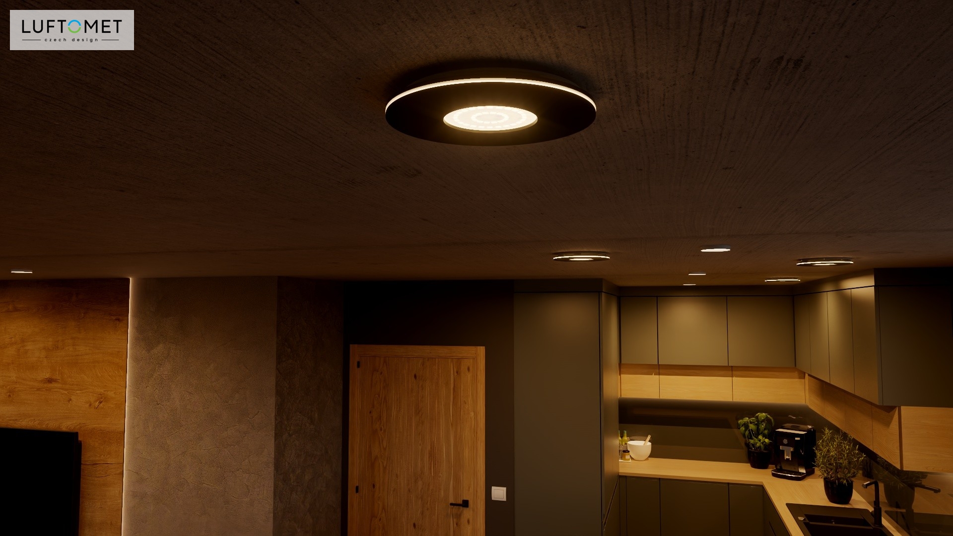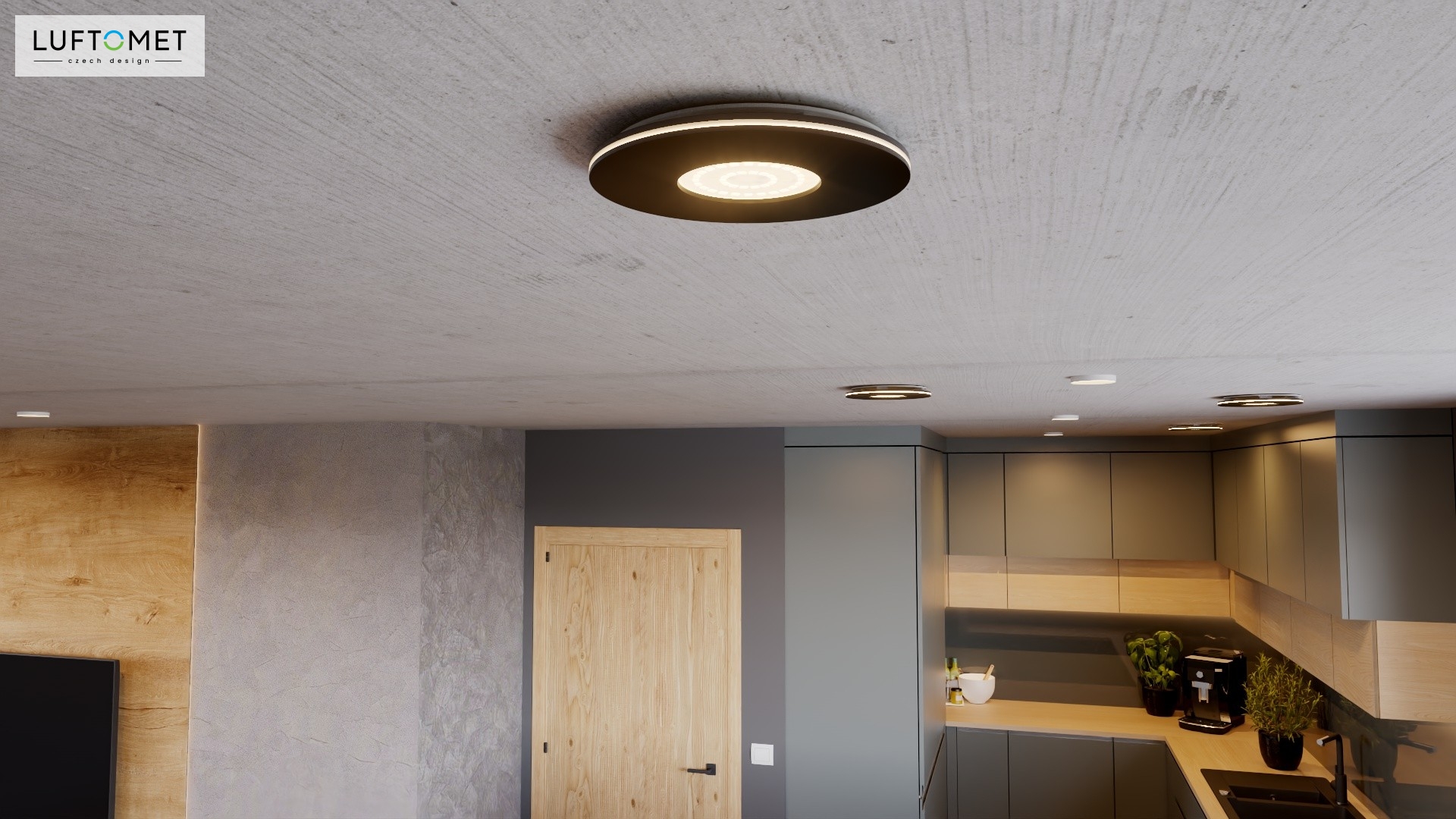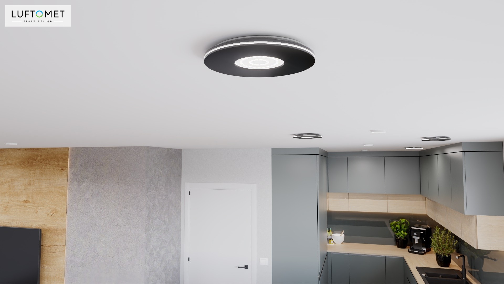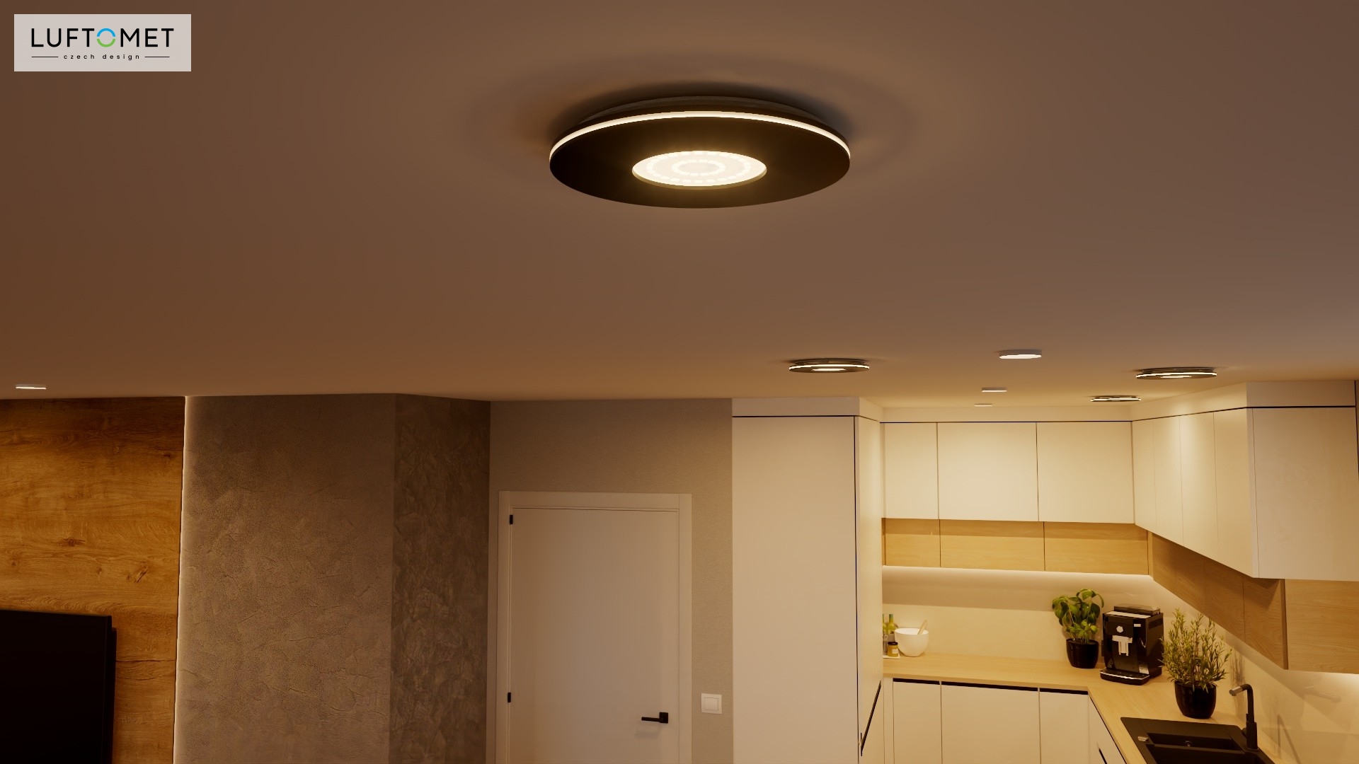Využítí LUFTOMET Lumen plast kruh v černé matné barvě v interiéru.
