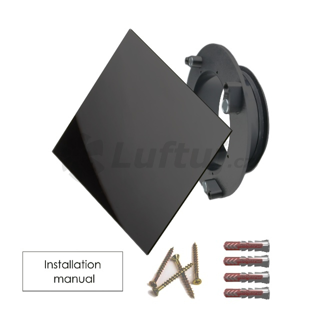 LUFTOMET Singlepack Sky Air Diffuser, glass square dim black, black mounting frame