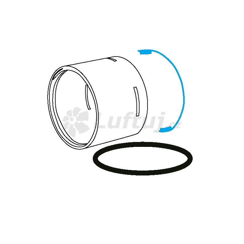 LUFTooL Spigot for Ducting (90 mm, male) The flexible pipe socket with an outer diameter of 90 mm is a universal modular element from the LUFTooL Distribute series. It consists of components that can be screwed together quickly and tightly into various units. The LUFTooL Distribute system is: • an innovative system for distributing air flow into individual zones/rooms • modular (its components can be combined) • designed for flexible plastic pipes with a diameter of 75 and 90 mm and traditional SPIRO pipes of 100 mm • designed for ventilation in family houses and small businesses with air flows through individual branches up to 100 m3/h • a very tight system achieves class D tightness according to ČSN EN 15727 • suitable for the supply and exhaust of commonly polluted air (without chemicals, etc.) • fully cleanable, pulling brushes through the damper can be done without dismantling the damper module • made of ABS and PETG Package includes: Plastic molding of the neck body (ABS), sealing and locking ring (PETG). Packed in a plastic bag. The spigot can be screwed on one side, for example, to: LUFTooL Spigots (90mm, 75mm, 100 mm) LUFTooL Damper module with automatic or manual control Assembly Screw on the appropriate module. Then put the seal on the pipe, insert it into the spigot and lock it with the blue locking ring.