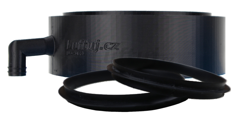 The flexible pipe socket with an outer diameter of 90 mm is a universal modular element from the LUFTooL Distribute series. It consists of components that can be screwed together quickly and tightly into various units. The LUFTooL Distribute system is: • an innovative system for distributing air flow into individual zones/rooms • modular (its components can be combined) • designed for flexible plastic pipes with a diameter of 75 and 90 mm and traditional SPIRO pipes of 100 mm • designed for ventilation in family houses and small businesses with air flows through individual branches up to 100 m3/h • a very tight system achieves class D tightness according to ČSN EN 15727 • suitable for the supply and exhaust of commonly polluted air (without chemicals, etc.) • fully cleanable, pulling brushes through the damper can be done without dismantling the damper module • made of ABS and PETG Package includes: Plastic molding of the neck body (ABS), sealing and locking ring (PETG). Packed in a plastic bag. Dimensions: The spigot can be screwed on one side, for example, to: LUFTooL connectors (LF-CO-125) - which are inserted into the distribution box LUFTOMET® Flat boxes LUFTooL damper module with automatic or manual control Installation examples Mounting via connector or damper module to the distribution box Assembly Screw on the appropriate module. Then put the seal on the pipe, insert it into the spigot and lock it with the blue locking ring.