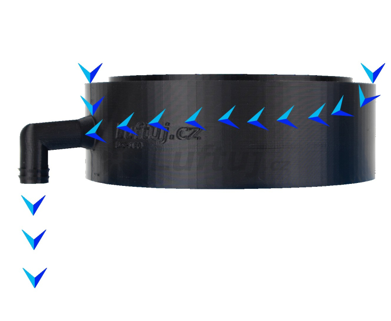 When the exhausted air has to pass through an unheated zone, it is necessary to ensure that only a minimum of condensate forms in the duct and that it does not mold and water does not flow into the heat recovery unit. LUFTooL Trap condensation pieces will help with this. The combination with pipes made of EPE or EPS insulators is ideal due to minimal thermal bridges. The plastic condensate piece or condensate outlet is inserted into the HVAC thermal insulation pipe (EPE or EPS). In EPE and EPS designs, we offer it for air ducts with an inner diameter in sizes from 125 to 200 mm. The condensation piece removes excess moisture from the pipe. By inserting the condensation piece into the insulating material pipe, thermal bridges of this part of the system are eliminated. The condensate drain hose d16 is fully compatible with the condensate piece, which is only pushed onto the drip elbow. The LUFTooL Trap condensation piece is suitable for exhaust pipes (EHA) - from the heat recovery unit to the exterior. In winter, air flows in this duct with almost 100% humidity when the moisture condensation in the recuperator. It is placed above the heat recovery unit in a vertical duct. Technical information: - Height: 10 cm - Not compatible with SPIRO, KG, etc. piping!! only with piping according to designation - Compatible with D16 condensate drain hose PETG material: Flexible and strong High impact resistance and durability Harmless material Low shrinkage as it cools 100% recyclable Assembly: Cut the pipe in the place where you want to place the condensation piece. Vertical piping at the heated boundary of the thermal envelope is ideal. Place a condensation piece on the bottom of the pipe and cut a hole for the plastic elbow as tightly as possible with a snap-off knife. Insert the condensation piece and fit the top parts of the pipe. Seal the joint airtight with aluminum tape and thermally secure with at least two layers of thermal tape. Connect the condensate drain hose to the elbow and connect it to the sewer through a flooded siphon (beware of freezing). Package includes: 1) Condensation piece Packed loose in a box.