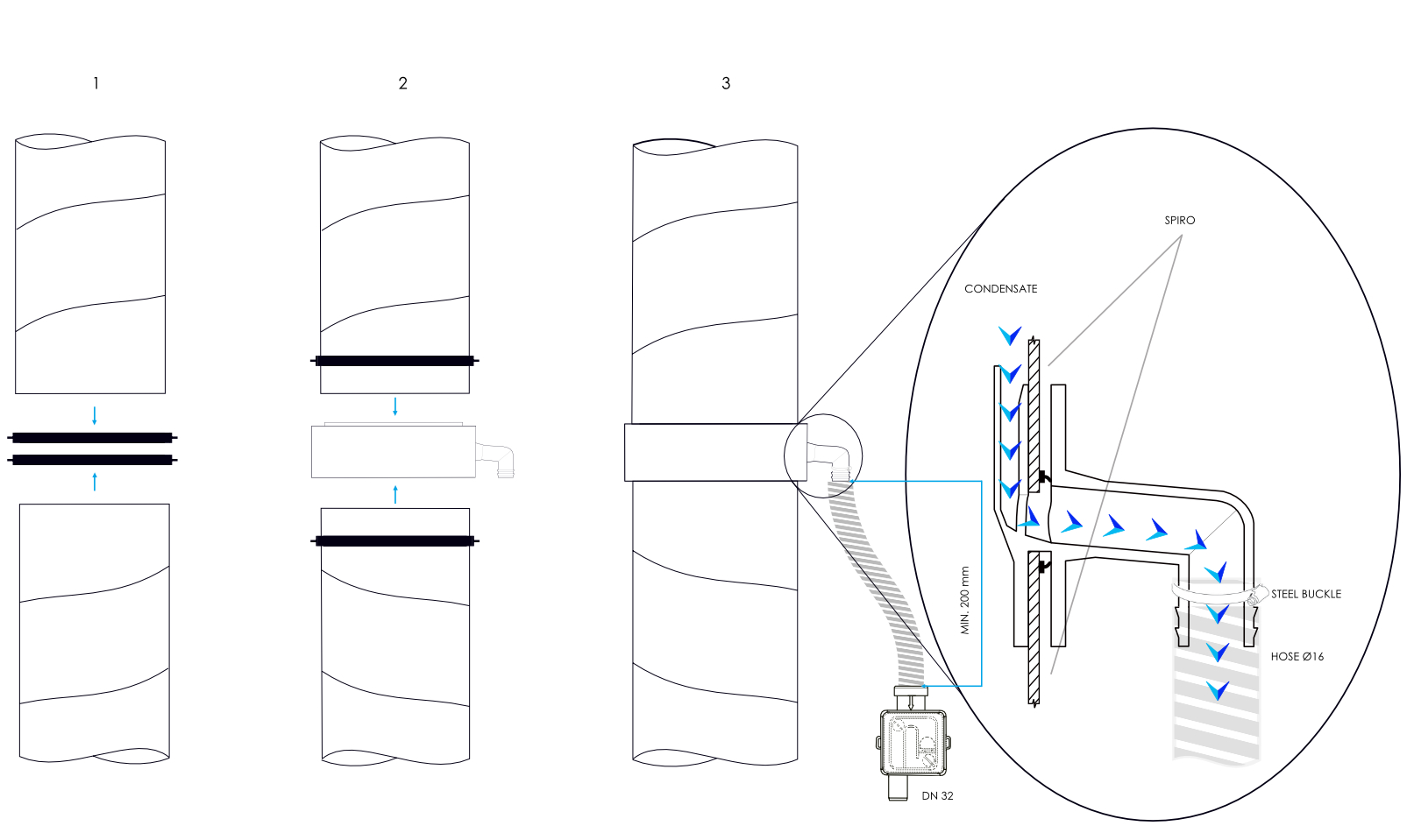 • very tight - designed to save space compared to other condensate collection solutions